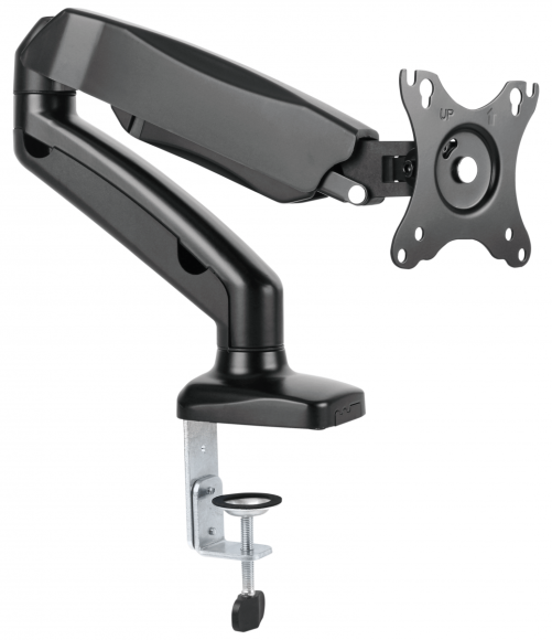 IB-MS303-T, Monitorständer mit TischhalterungAnforderungenDie Halterung ist geeignet für Monitore mit einer Bildschirmdiagonale von bis zu 27" (68 cm) und denVESA® Standards 75x75 und 100x100. Wichtig ist, dass diese ein Gewicht von maximal 6,5 kg nichtüberschreiten dürfen.Mit festem HaltMit Hilfe der Tischhalterung kann die IB-MS303-T an Tischen befestigt werden. Das ausgeklügelte Designsorgt für perfekte Stabilität.BeweglichGanz egal, wie Sie am liebsten arbeiten, die verschiedenen Gelenke sind in vielen Winkeln zu bewegen.So kann der Monitor genau so ausgerichtet werden, wie man es gerade benötigt. Eine volle Rotation von360° ist möglich, genau wie die Verstellung der Höhe, Neigung oder Entfernung zum Betrachter.