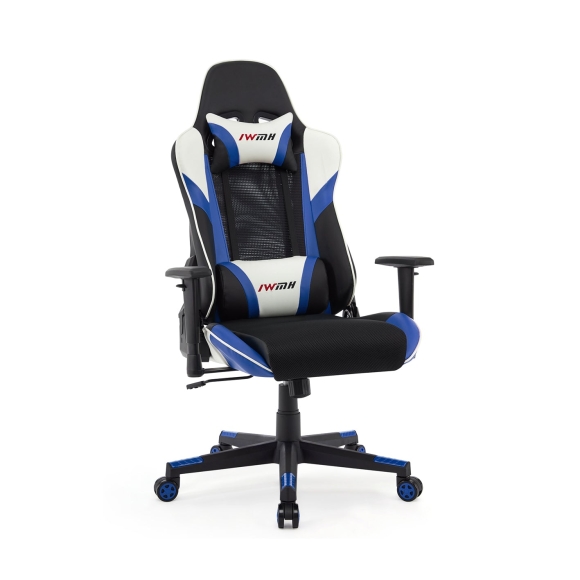 Indy Gaming Racingstuhl Kunstleder und atmungsaktivem Stoff mit Kopfst¨¹tze und Lordosenst¨¹tze - Blue