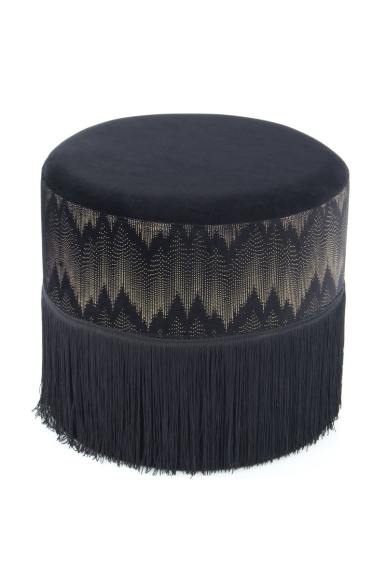 Orientalischer SitzhockerMit diesem Hocker holen Sie sich ein Stück Orient in Ihre vier Wände. Edel geprintetes Design und lange Fransen verleihen dem Hocker seinen besonderen und orientalischen Look. Orientalische Einrichtungen lassen sich mit dieser alternativen Sitzgelegenheit harmonisch unterstreichen. Aber auch in moderne und klassische Einrichtungen ist er problemlos integrierbar. Besonders in kleinen Räumen kann der runde Hocker mit seiner geringen Größe gut platziert werden. Er kann platzsparend eingesetzt werden und einfach zur Seite geräumt werden, wenn der Platz anderweitig benötigt wird. Durch Füße aus Gummi an der Unterseite des Hockers kann er bodenschonend verrückt werden. Sowohl als Fußablage als auch als Sitzgelegenheit kann der Hocker optimal genutzt werden, denn die Sitzfläche mit weicher Polsterung und samtigem Bezug aus Stoff bietet angenehmen Komfort. Das Möbelstück kann in seiner tatsächlichen Farbgebung von den Bildern abweichen. Durch unterschiedlichen Lichteinfall und verschiedene Streichrichtungen des Stoffbezuges können unterschiedliche Farbnuancen entstehen.