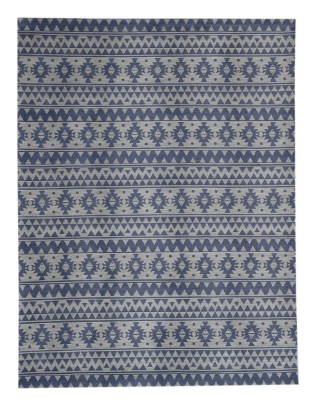 **In- und Outdoor-Teppich in modernem Design**Dieser moderne Teppich kann im Innen- und Außenbereich vielseitig eingesetzt werden. Aus 100 % Polyester wird er in Handarbeit hergestellt und hält durch sein robustes Material jedem Wetter stand. Regen, starke Sonneneinstrahlung oder Wind können dem Teppich nichts anhaben – er behält Form und Farbe lange bei. Verlagern Sie Ihren Wohnbereich im Sommer in den Außenbereich und nehmen Sie Ihren Teppich gleich mit. Mit dem 5 mm hohen Flor verleihen Sie Ihrem Garten, Ihrem Balkon oder Ihrer Terrasse ein ganz besonderes Flair. Doch nicht nur für den Außenbereich ist der Flachflorteppich gut geeignet, denn durch das pflegeleichte Material ist er auch für viel genutzte Räume des Innenbereichs ideal. Ob in Küche, Badezimmer oder Eingangsbereich – der Teppich ist einfach zu reinigen und trocknet schnell. Sogar auf Fußbodenheizungen kann er problemlos genutzt werden. Das Hauptelement des grafischen Musters bilden Dreiecke. Die Symmetrie und die Wiederholungen des Musters wirken charmant und bringen gleichzeitig einen leichten Ethno-Style in ihre Umgebung. Der zweifarbige Teppich ist in verschiedenen Farben erhältlich und lässt sich dadurch mit nahezu jeder Stilrichtung Ihres Innen- oder Außenbereichs kombinieren. Zusätzlich sind verschiedene Größen wählbar, sodass der Teppich für jeden Bedarf verwendet werden kann. Bei dem händisch gefertigten Teppich kann es in Muster, Farben und der Größe zu leichten Abweichungen kommen.