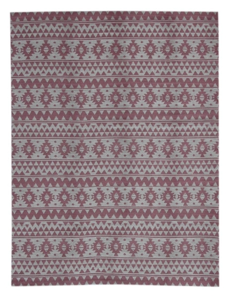 **In- und Outdoor-Teppich in modernem Design**Dieser moderne Teppich kann im Innen- und Außenbereich vielseitig eingesetzt werden. Aus 100 % Polyester wird er in Handarbeit hergestellt und hält durch sein robustes Material jedem Wetter stand. Regen, starke Sonneneinstrahlung oder Wind können dem Teppich nichts anhaben – er behält Form und Farbe lange bei. Verlagern Sie Ihren Wohnbereich im Sommer in den Außenbereich und nehmen Sie Ihren Teppich gleich mit. Mit dem 5 mm hohen Flor verleihen Sie Ihrem Garten, Ihrem Balkon oder Ihrer Terrasse ein ganz besonderes Flair. Doch nicht nur für den Außenbereich ist der Flachflorteppich gut geeignet, denn durch das pflegeleichte Material ist er auch für viel genutzte Räume des Innenbereichs ideal. Ob in Küche, Badezimmer oder Eingangsbereich – der Teppich ist einfach zu reinigen und trocknet schnell. Sogar auf Fußbodenheizungen kann er problemlos genutzt werden. Das Hauptelement des grafischen Musters bilden Dreiecke. Die Symmetrie und die Wiederholungen des Musters wirken charmant und bringen gleichzeitig einen leichten Ethno-Style in ihre Umgebung. Der zweifarbige Teppich ist in verschiedenen Farben erhältlich und lässt sich dadurch mit nahezu jeder Stilrichtung Ihres Innen- oder Außenbereichs kombinieren. Zusätzlich sind verschiedene Größen wählbar, sodass der Teppich für jeden Bedarf verwendet werden kann. Bei dem händisch gefertigten Teppich kann es in Muster, Farben und der Größe zu leichten Abweichungen kommen.