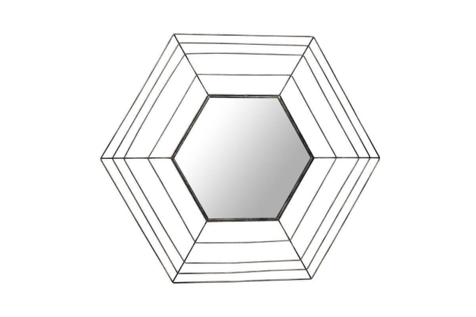 **Wandspiegel mit stilvollem Rahmen**Mit diesem Spiegel erhalten Sie eine besondere Wanddekoration. Das moderne, minimalistisch gehaltene Design des Draht-Rahmens umgibt die sechseckige Spiegelfläche in der Mitte stilvoll. Sowohl im Wohnzimmer als auch im Eingangsbereich oder im Schlafzimmer kann die dekorative Aufmachung sich sehen lassen. Durch die Größe von ca. 69 x 79,5 cm kann der Spiegel an kleinen oder auch großen Wänden aufgehängt werden, ohne an Charakter zu verlieren. Die außergewöhnliche Form wird schnell zum Hingucker und kann durch die dezente Farbgebung mit vielen Einrichtungsstilen problemlos kombiniert werden. Vergrößern Sie optisch Ihr Raumbild und statten Sie Ihr Zuhause mit modernen Spiegeln aus.