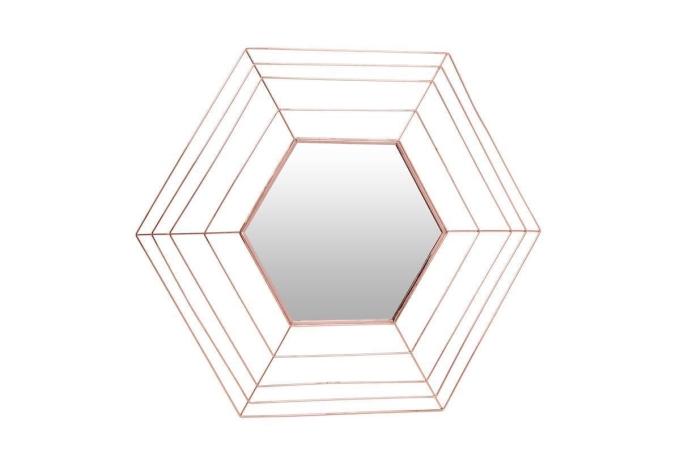 **Wandspiegel mit stilvollem Rahmen**Mit diesem Spiegel erhalten Sie eine besondere Wanddekoration. Das moderne, minimalistisch gehaltene Design des Draht-Rahmens umgibt die sechseckige Spiegelfläche in der Mitte stilvoll. Sowohl im Wohnzimmer als auch im Eingangsbereich oder im Schlafzimmer kann die dekorative Aufmachung sich sehen lassen. Durch die Größe von ca. 69 x 79,5 cm kann der Spiegel an kleinen oder auch großen Wänden aufgehängt werden, ohne an Charakter zu verlieren. Die außergewöhnliche Form wird schnell zum Hingucker und kann durch die dezente Farbgebung mit vielen Einrichtungsstilen problemlos kombiniert werden. Vergrößern Sie optisch Ihr Raumbild und statten Sie Ihr Zuhause mit modernen Spiegeln aus.