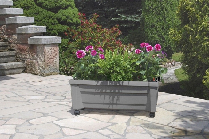 KHW Calypso Pflanzkasten auf Rollen mit Bewässerungssystem, grau