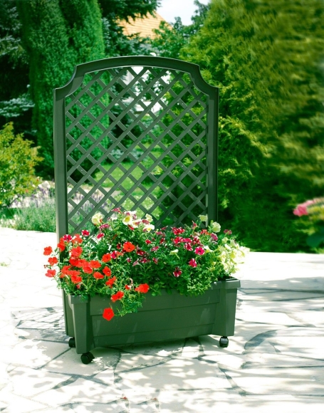KHW Calypso Pflanzkasten auf Rollen mit Bewässerungssystem + Spalier, grün
