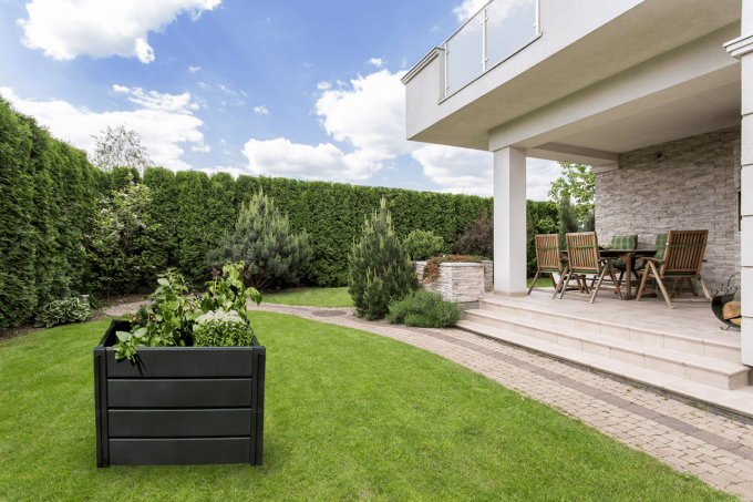 Erweiterbares Hochbeet aus wetterbeständigem Kunststoff inklusiv UV-Schutz in modernem Design. Inhalt 336 Liter. Äußerst stabil. Einfache Montage durch Schiebesystem, kein zusätzliches Werkzeug für den Aufbau erforderlich. Nach Bedarf kann dieses Hochbeet einfach und schnell durch weitere Varianten individuell erweitert werden. Artikel besteht aus 14 x Segment, 12 x Pfosten, 6 x Adapter, 6 x Kappe. Abmessungen aufgebaut 82 x 82 x H 61 cm.