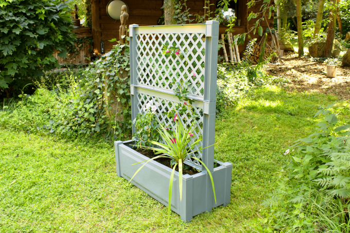 KHW Pflanzkasten groß mit Zentralspalier (2-tlg.) 100 cm, grau