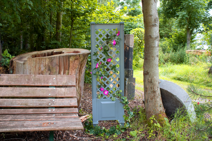 KHW Spalier aus Vollkunststoff, beidseitig bepflanzbar. Mit 2 Erdspießen.Schützt Sie vor neugierigen Blicken in Ihrem Garten oder an der Terrasse.100 % Polypropylen. UV-stabil, pflegeleicht, wetterfest.Abmessungen B 43 x T 6 x H 140 cm.Einfache Montage ohne zusätzliches Werkzeug – nur durch Zusammenstecken der einzelnen Teile.