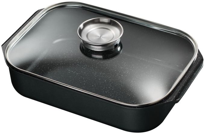 KING® Aluguss Bräter mit Glasdeckel ca. 40 cm SCHWARZ