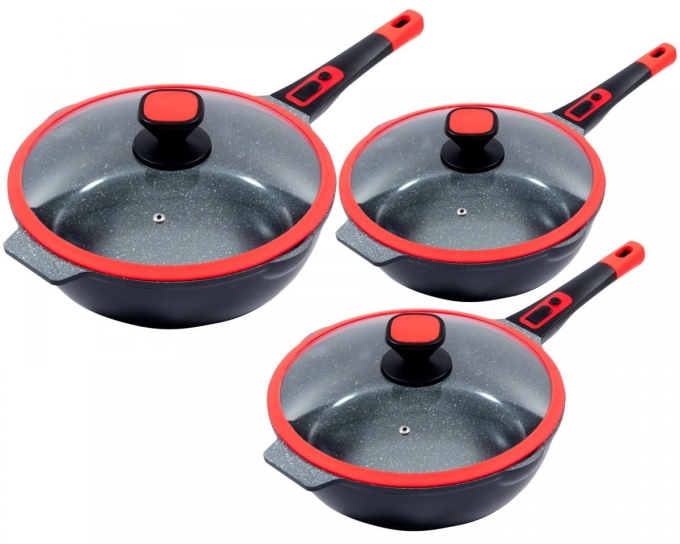 KING Click-Grip Bratpfannenset 3tlg. Aluguss mit Keramikbeschichtung mit Glasdeckel