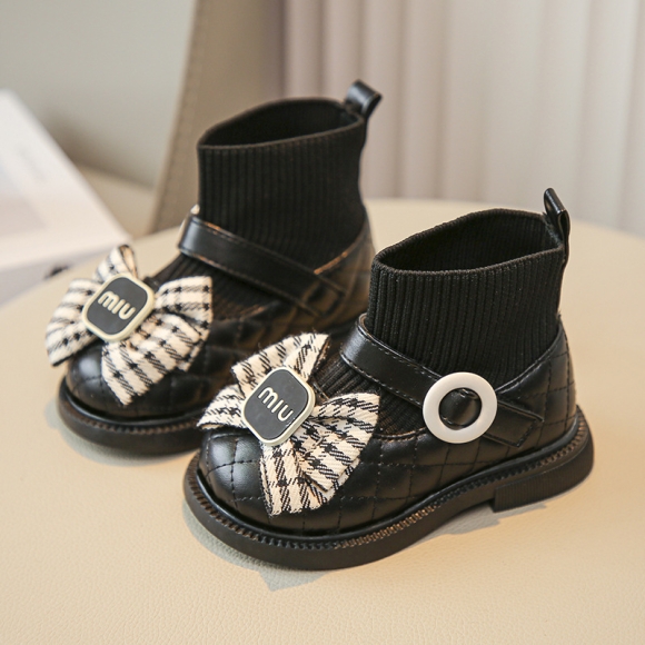 Kleine Duft Kinder Fly Knit High Top Socken Schuhe Schleife Elegante M?dchen Schuhe Mode One-boot Leder Schuhe