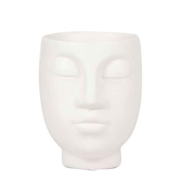 Produktbeschreibung:. Schaffen Sie eine Oase der Ruhe in Ihrem Zuhause mit dem Kolibri Home White Face Planter. Dieser Ø9cm große, kunstvoll gestaltete Keramiktopf zeichnet sich durch eine beruhigende Gesichtssilhouette aus, die eine Atmosphäre von Stille und Frieden ausstrahlt.. Produkthighlights:. Sorgfältig handgefertigte weiße Keramik. Einzigartige Gesichtsform, die Ruhe und Nachdenklichkeit fördert. Perfekte Größe für Schreibtisch oder Fensterbank. Ideal für:. Ideal für Liebhaber minimalistischen Designs, die ihr Heim oder Büro mit einer Note von Zen schmücken wollen.. Was ist im Produkt enthalten?. 1 x Weißer Keramik-Ziertopf Ø9cm). Standort:. Positionieren Sie ihn als Solitär auf einem Regal oder in einer ruhigen Ecke, um die Schönheit seiner einfachen Linien und des sanften Glanzes hervorzuheben.