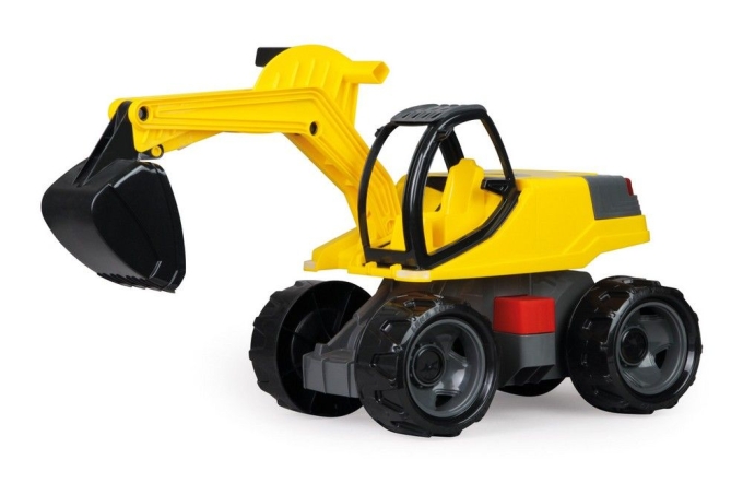 LENA® GIGA TRUCKS Bagger gelb/schwarz in modernem detaillierten Design mit 6 mm verzinkten Stahlachsen, in realistischen Farben, mit allen Funktionen ausgestattet - schaufelt im Sand ein bis zu 13 cm tiefes Loch, 360° drehbarer und arretierbarer Baggeraufsatz, Schaufelbetätigung erfolgt über 2 Griffe, 63 cm lang, geeignet für die Kleinen ab 3 Jahren. Indoor & Outdoor geeignet. Verpackt in Versandkarton mit ausführlichen Produktinformationen. MADE IN EUROPE. Spiel Gut. TÜV zertifiziert.