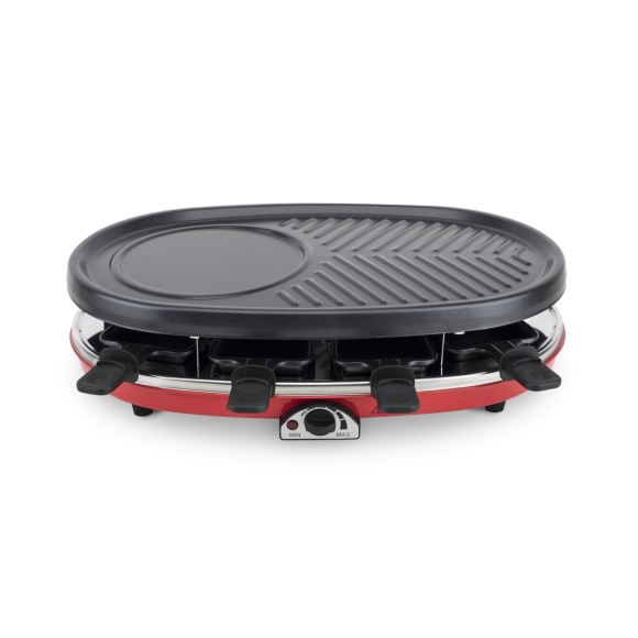 Organisieren Sie gesellige Abende mit dem 4-in-1-Raclettegerät RP418 von H.Koenig. Dank seiner drei austauschbaren Platten haben Sie die Wahl zwischen 4 verschiedenen Optionen. Wählen Sie zwischen dem Raclette für 8 Personen, der Granitplatte für Ihr Grillgut, dem Grill für Ihre Fajita-Abende oder der Platte mit 6 Mini-Pfannkuchen für Ihre Brunch- oder Crêpes-Party. Leistungsstark mit 1500 Watt und leicht zu reinigen dank der abnehmbaren Platte und der 8 antihaftbeschichteten Pfannen. Das perfekte Gerät für ein Abendessen mit Familie oder Freunden durant an Winterabenden!MerkmaleRaclette 8 Personen, Granitstein 6 Mini-Crêpes und GrillEinstellbare TemperaturThermostat mit KontrollleuchteAbnehmbare Platten zur einfachen ReinigungRutschfeste FüßeZubehör: 8 antihaftbeschichtete PfännchenLeistung: 1500 W