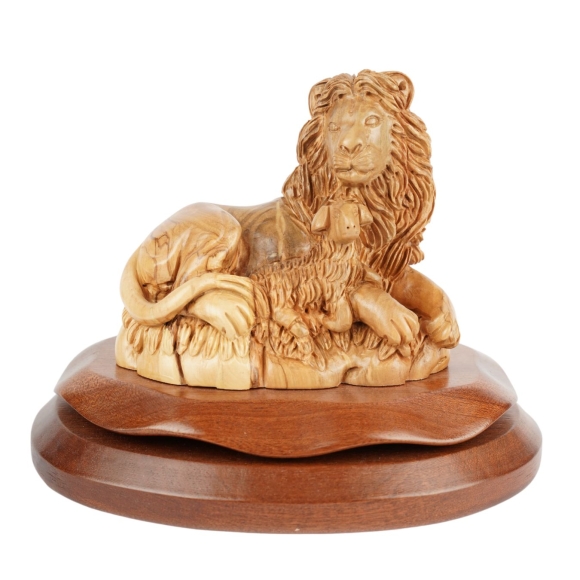 Löwe und Lamm – Symbol des Friedens aus Olivenholz (20 cm)