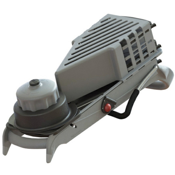 Mandoline DE BUYER " VIPER " Edelstahl/Polymer, schneidet dank ihrer V-förmigen Klinge auch weiches Obst/Gemüse oder Gemüse mit Haut, Wurstwaren etc. Eine Schale für den Scheibenschneider, verstellbar von 1 bis 8 mm, und 2 Schalen für Julienne-Klingen 4 und 10 mm mit Aufbewahrungsbox. Rutschfeste, einklappbare Füße. Drücker nylon mit Rotationskontrolle ausgestattet. Mehrere Schnittarten: Scheiben, 4 und 10 mm Würfel, Rauten, Julienne und Pommes frites.