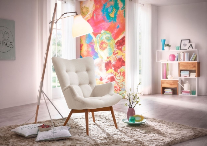 Unser Retrosessel Aiko ist ein stylischer Hochlehnsessel. Die Zierknöpfe der Rückenlehne verleihen dem Sessel Struktur und zusätzlich Eleganz. Die stylischen Füße sind aus massiver Buche und unterstreichen das wertige Design.·74x81x98 in cm (BxTxH)·Nettogewicht 14 kg·Flachgewebe (Leinenoptik)·100% Polyester·Sitzhärte fest·Anzahl Sitze 1 ·stabile Auflageplatte, Polyätherschaum, Diolenabdeckung·Fußfarbe Buche natur·stabiles Holzgrundgestell aus Massivholz und Holzwerkstoffen·Bodenfreiheit 30 cm·Armteilhöhe innen vorn/hinten 22 cm·Höhe ohne Füße 68 cm·Rückenhöhe innen 57 cm·Sitzbreite vorn/hinten44 / 34 cm·Sitztiefe 43 cm·Sitzhöhe 42 cm