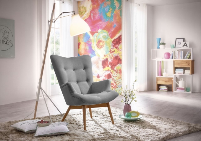 Unser Retrosessel Aiko ist ein stylischer Hochlehnsessel. Die Zierknöpfe der Rückenlehne verleihen dem Sessel Struktur und zusätzlich Eleganz. Die stylischen Füße sind aus massiver Buche und unterstreichen das wertige Design.·74x81x98 in cm (BxTxH)·Nettogewicht 14 kg·Flachgewebe (Leinenoptik)·100% Polyester·Sitzhärte fest·Anzahl Sitze 1 ·stabile Auflageplatte, Polyätherschaum, Diolenabdeckung·Fußfarbe Buche natur·stabiles Holzgrundgestell aus Massivholz und Holzwerkstoffen·Bodenfreiheit 30 cm·Armteilhöhe innen vorn/hinten 22 cm·Höhe ohne Füße 68 cm·Rückenhöhe innen 57 cm·Sitzbreite vorn/hinten44 / 34 cm·Sitztiefe 43 cm·Sitzhöhe 42 cm