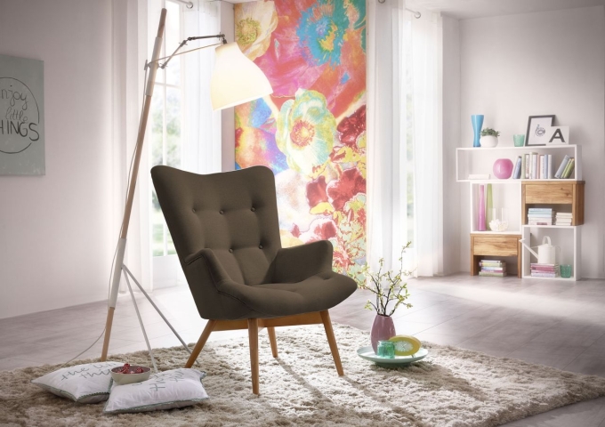 Unser Retrosessel Aiko ist ein stylischer Hochlehnsessel. Die Zierknöpfe der Rückenlehne verleihen dem Sessel Struktur und zusätzlich Eleganz. Die stylischen Füße sind aus massiver Buche und unterstreichen das wertige Design.·74x81x98 in cm (BxTxH)·Nettogewicht 14 kg·Flachgewebe (Leinenoptik)·100% Polyester·Sitzhärte fest·Anzahl Sitze 1 ·stabile Auflageplatte, Polyätherschaum, Diolenabdeckung·Fußfarbe Buche natur·stabiles Holzgrundgestell aus Massivholz und Holzwerkstoffen·Bodenfreiheit 30 cm·Armteilhöhe innen vorn/hinten 22 cm·Höhe ohne Füße 68 cm·Rückenhöhe innen 57 cm·Sitzbreite vorn/hinten44 / 34 cm·Sitztiefe 43 cm·Sitzhöhe 42 cm
