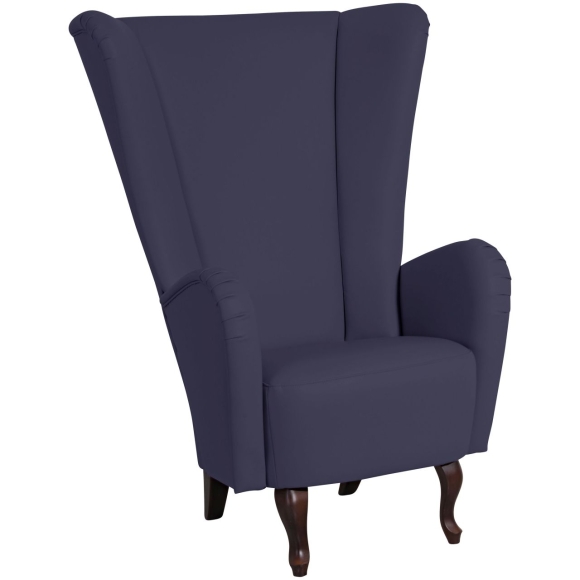 Dieser elegante Sessel mit seinem extrahohen Rücken erinnert an einen Thron. Fühlen Sie sich königlich und setzten Sie ein echtes Highlight in Ihrem Zuhause. Die beiden vorderen, stilvoll geschwungenen Füße unterstreichen das Gesamtbild. Die Füße sind zur einfachen Selbstmontage.·89x96x122 in cm (BxTxH)·Nettogewicht 29 kg·Kunstleder·90% Polyester, 6% Baumwolle·Sitzhärte mittel·Anzahl Sitze 1 ·stabile Schichtholzplatte, Polyätherschaum, Diolenabdeckung·Fußfarbe Buche nussbaum dunkel·stabiles Holzgrundgestell aus Massivholz und Holzwerkstoffen·Bodenfreiheit 21 cm·Armteilhöhe innen vorn/hinten 22 / 21 cm·Höhe ohne Füße 68 cm·Rückenhöhe innen 81 cm·Sitzbreite vorn/hinten50 cm·Sitztiefe 49 cm·Sitzhöhe 48 cm
