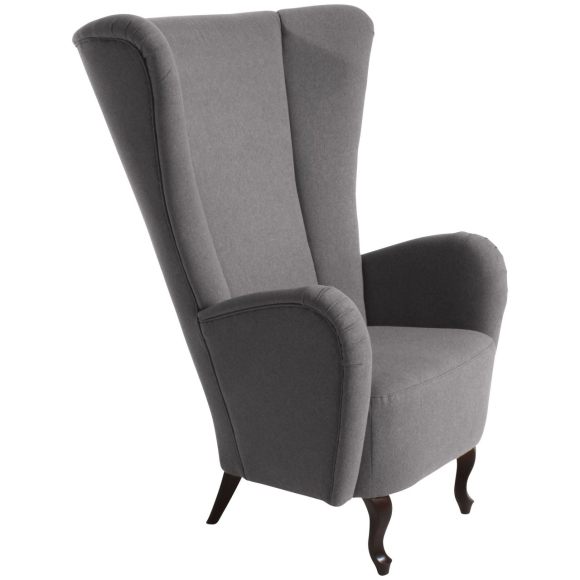 Dieser elegante Sessel mit seinem extrahohen Rücken erinnert an einen Thron. Fühlen Sie sich königlich und setzten Sie ein echtes Highlight in Ihrem Zuhause. Die beiden vorderen, stilvoll geschwungenen Füße unterstreichen das Gesamtbild. Die Füße sind zur einfachen Selbstmontage.·89x96x122 in cm (BxTxH)·Nettogewicht 29 kg·Flachgewebe (Filzoptik)·100% Polyvinylchlorid·Sitzhärte mittel·Anzahl Sitze 1 ·stabile Schichtholzplatte, Polyätherschaum, Diolenabdeckung·Fußfarbe Buche nussbaum dunkel·stabiles Holzgrundgestell aus Massivholz und Holzwerkstoffen·Bodenfreiheit 21 cm·Armteilhöhe innen vorn/hinten 22 / 21 cm·Höhe ohne Füße 68 cm·Rückenhöhe innen 81 cm·Sitzbreite vorn/hinten50 cm·Sitztiefe 49 cm·Sitzhöhe 48 cm