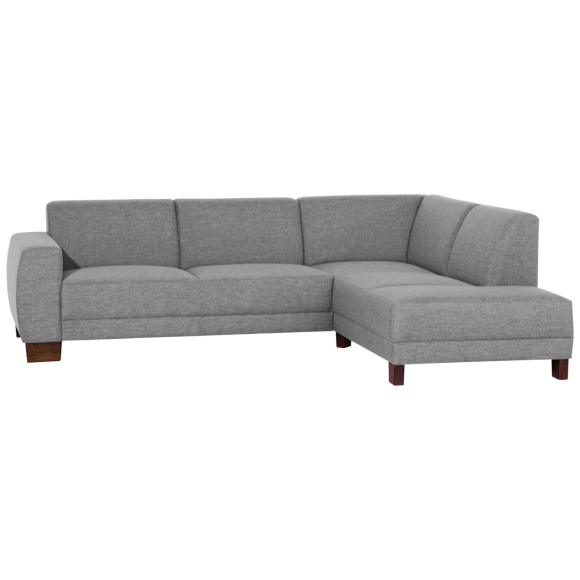 Modernes, geradliniges Ecksofa mit offenem Abschluss. Ein Klassiker in zeitlos moderner Formensprache. Der niedrige, leicht gewölbte Rücken macht dieses Sofa zur perfekten Loungegarnitur.  Der Bezug aus Flachgewebe in moderner Leinenstruktur mit angenehmen Griff und die massiven Buchefüße in dunklem Nussbaumfarbton komplettieren das Gesamtbild. Der Rücken ist ebenfalls im Originalstoff bezogen, damit ist die Polsterecke frei im Raum stellbar. ·248x188x75 in cm (BxTxH) ·Nettogewicht 37 kg ·Flachgewebe (Leinenoptik) ·100 % Polyester ·Sitzhärte mittel ·Anzahl Sitze 6 cm ·Wellenunterfederung, Polyätherschaum mit Diolenabdeckung ·Fußfarbe Buche nussbaum dunkel ·stabiles Holzgrundgestell aus Massivholz und Holzwerkstoffen ·Bodenfreiheit 10 cm ·Armteilhöhe innen vorn/hinten 17 cm ·Höhe ohne Füße 68 cm ·Rückenhöhe innen 41 cm ·Sitzbreite vorn/hinten cm ·Sitztiefe 60 cm ·Sitzhöhe 42 cm