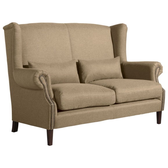 Gemütliches Sofa im Ohrenbackenstil mit vielen aufwendigen Details. Die elegant geschwungenen Armlehnen verfügen über ein dekoratives Ziernagelband. Die losen Sitzkissen mit weicher Schaumstoffflockenfüllung sind mit einem Klettverschluss am Korpus befestigt. Die mitgelieferten Zierkissen sorgen für zusätzlichen Sitzkomfort und unterstreichen die behagliche Optik. Flora ist als 2-Sitzer und 3-Sitzer erhältlich und kann auch um einen passenden Einzelsessel ergänzt werden. ·175x94x112 in cm (BxTxH) ·Nettogewicht 53 kg ·Flachgewebe ·100% Polyester ·Sitzhärte weich ·Anzahl Sitze 2 ·Gurtunterfederung, Polyätherschaum, Diolenabdeckung, lose Sitzkissen mit Schaumstoffflocken-Füllung, mit Klettverschluss am Korpus befestigt ·Fußfarbe Buche nussbaum dunkel ·stabiles Holzgrundgestell aus Massivholz und Holzwerkstoffen ·Bodenfreiheit 15/12 cm ·Armteilhöhe innen vorn/hinten 16 cm ·Höhe ohne Füße 68 cm ·Rückenhöhe innen 61 cm ·Sitzbreite vorn/hinten132 cm ·Sitztiefe 49 cm ·Sitzhöhe 50 cm