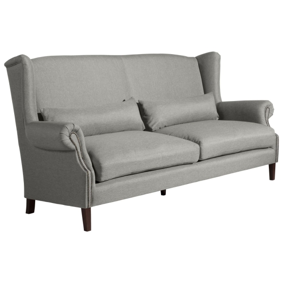 Gemütliches Sofa im Ohrenbackenstil mit vielen aufwendigen Details. Die elegant geschwungenen Armlehnen verfügen über ein dekoratives Ziernagelband. Die losen Sitzkissen mit weicher Schaumstoffflockenfüllung sind mit einem Klettverschluss am Korpus befestigt. Die mitgelieferten Zierkissen sorgen für zusätzlichen Sitzkomfort und unterstreichen die behagliche Optik. Flora ist als 2-Sitzer und 3-Sitzer erhältlich und kann auch um einen passenden Einzelsessel ergänzt werden. ·234x94x112 in cm (BxTxH) ·Nettogewicht 69 kg ·Flachgewebe ·100% Polyester ·Sitzhärte weich ·Anzahl Sitze 3 ·Gurtunterfederung, Polyätherschaum, Diolenabdeckung, lose Sitzkissen mit Schaumstoffflocken-Füllung, mit Klettverschluss am Korpus befestigt ·Fußfarbe Buche nussbaum dunkel ·stabiles Holzgrundgestell aus Massivholz und Holzwerkstoffen ·Bodenfreiheit 15/12 cm ·Armteilhöhe innen vorn/hinten 16 cm ·Höhe ohne Füße 68 cm ·Rückenhöhe innen 61 cm ·Sitzbreite vorn/hinten192 cm ·Sitztiefe 49 cm ·Sitzhöhe 50 cm