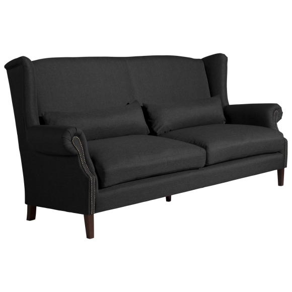 Gemütliches Sofa im Ohrenbackenstil mit vielen aufwendigen Details. Die elegant geschwungenen Armlehnen verfügen über ein dekoratives Ziernagelband. Die losen Sitzkissen mit weicher Schaumstoffflockenfüllung sind mit einem Klettverschluss am Korpus befestigt. Die mitgelieferten Zierkissen sorgen für zusätzlichen Sitzkomfort und unterstreichen die behagliche Optik. Flora ist als 2-Sitzer und 3-Sitzer erhältlich und kann auch um einen passenden Einzelsessel ergänzt werden. ·234x94x112 in cm (BxTxH) ·Nettogewicht 69 kg ·Flachgewebe ·100% Polyester ·Sitzhärte weich ·Anzahl Sitze 3 ·Gurtunterfederung, Polyätherschaum, Diolenabdeckung, lose Sitzkissen mit Schaumstoffflocken-Füllung, mit Klettverschluss am Korpus befestigt ·Fußfarbe Buche nussbaum dunkel ·stabiles Holzgrundgestell aus Massivholz und Holzwerkstoffen ·Bodenfreiheit 15/12 cm ·Armteilhöhe innen vorn/hinten 16 cm ·Höhe ohne Füße 68 cm ·Rückenhöhe innen 61 cm ·Sitzbreite vorn/hinten192 cm ·Sitztiefe 49 cm ·Sitzhöhe 50 cm