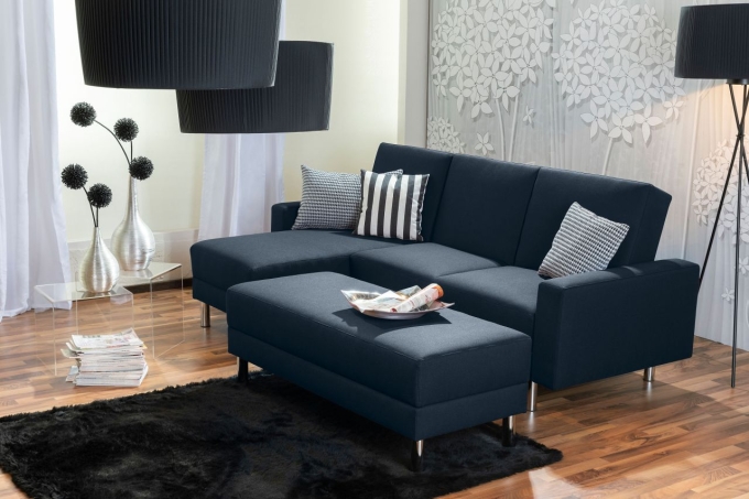 Moderne Longchair-Garnitur in schlichtem, zeitlosen Design. Der Longchair ist wahlweise rechts oder links montierbar. Damit passt sich die Garnitur Ihrer individuellen Wohnsituation an. Die Rückenlehne ist 5-fach verstellbar. Für optimalen Sitzkomfort sorgt ein schaumummantelter Federkern in der Sitzfläche. Der mitgelieferte Stauraumhocker ergänzt die Garnitur perfekt und lässt sich am Sofa fixieren. In Verbindung mit der zurückgeklappten Rückenlehne entsteht so eine große Liegefläche von ca. 170 x 200 cm. Die verchromten Metallfüße unterstreichen den modernen Look. ·230x152x93 in cm (BxTxH) ·Nettogewicht 56 kg ·Flachgewebe ·100% Polyester ·Sitzhärte mittel ·Anzahl Sitze 6 cm ·Wellenunterfederung, schaumummantelter Einzelfederkern, Polyätherschaum, Diolenabdeckung ·Fußfarbe Metall chromfarben ·stabiles Holzgrundgestell aus Massivholz und Holzwerkstoffen ·Bodenfreiheit 14 cm ·Armteilhöhe innen vorn/hinten 17 cm ·Höhe ohne Füße 68 cm ·Rückenhöhe innen 47 cm ·Sitzbreite vorn/hinten65 / 135 cm ·Sitztiefe 50 / LC 110 cm ·Sitzhöhe 47 cm