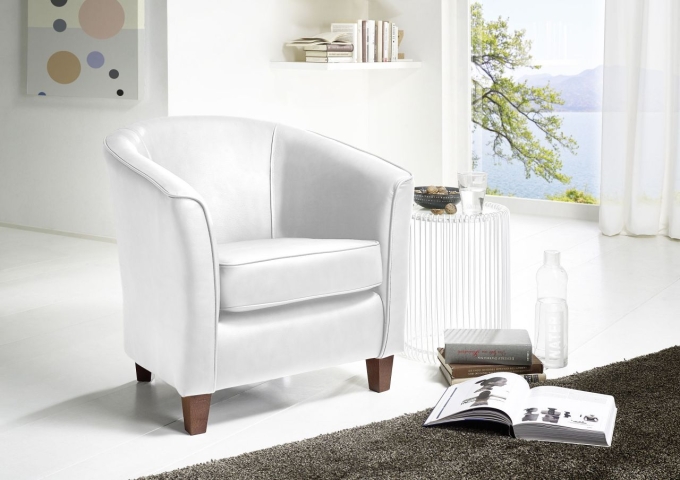 Kleiner, zierlicher Einzelsessel, der in jeden Raum passt. Der Echtlederbezug und die nussbaumfarbenen Füßen verleihen Livia eine edles Erscheinungsbild. Die Füße sind zur einfachen Selbstmontage. ·70x70x74 in cm (BxTxH) ·Nettogewicht 14 kg ·pigmentiertes Nappaleder ·100% Leder ·Sitzhärte mittel ·Anzahl Sitze 1 ·Gurtunterfederung, Sitzkissen lose aus Polyätherschaum mit Diolenabdeckung ·Fußfarbe Buche nussbaum dunkel ·stabiles Holzgrundgestell aus Massivholz und Holzwerkstoffen ·Bodenfreiheit 13 cm ·Armteilhöhe innen vorn/hinten 17 / 29 cm ·Höhe ohne Füße 68 cm ·Rückenhöhe innen 36 cm ·Sitzbreite vorn/hinten44 cm ·Sitztiefe 50 cm ·Sitzhöhe 45 cm