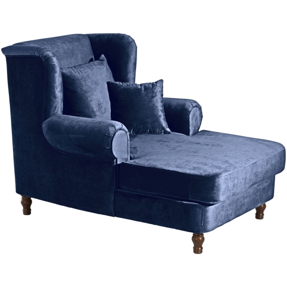 Megasessel mit integriertem Longchair im klassischen Ohrenbackenstil. Die Lieferung erfolgt inkl. 2 Zierkissen (55 x 55 cm und 40 x 40 cm). Außergewöhnlicher Blickfang für Ihr Wohnzimmer. Die gedrechselten Holzfüße runden das Gesamtbild ab. Die Füße sind zur einfachen Selbstmontage. ·103x149x103 in cm (BxTxH) ·Nettogewicht 54 kg ·Samtvelours ·100% Polyester ·Sitzhärte mittel ·Anzahl Sitze 2 ·Gurtunterfederung, Polyätherschaum, Diolenabdeckung ·Fußfarbe Buche nussbaum dunkel ·stabiles Holzgrundgestell aus Massivholz und Holzwerkstoffen ·Bodenfreiheit 14 cm ·Armteilhöhe innen vorn/hinten 20 cm ·Höhe ohne Füße 68 cm ·Rückenhöhe innen 58 cm ·Sitzbreite vorn/hinten95 / 57 cm ·Sitztiefe 120 cm ·Sitzhöhe 45 cm