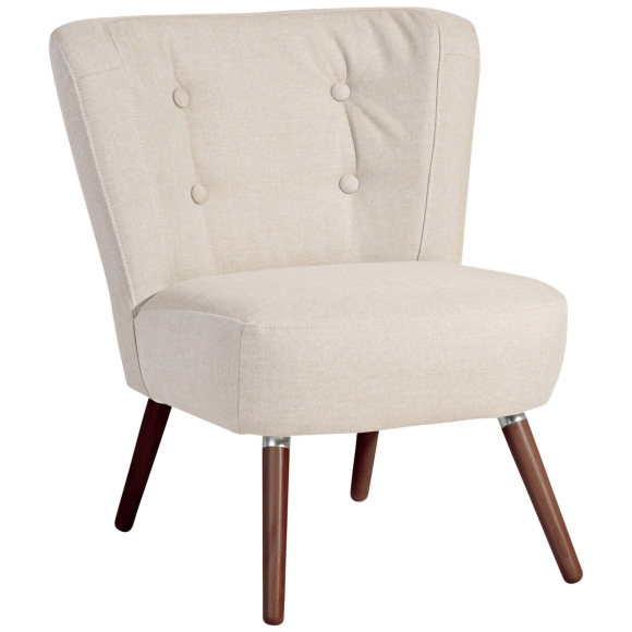 Formschöner Sessel mit vier Zierknöpfen im angesagten Retro-Stil. Neele ist in vielen verschiednenen Bezugstoffen von modern bis verträumt erhältlich. Wählen Sie Ihren Lieblingsstoff und kreieren Sie einen tollen Blickfang für Ihr Zuhause. Die markanten Holzfüße sind zur einfachen Selbstmontage. ·69x68x80 in cm (BxTxH) ·Nettogewicht 12 kg ·Flachgewebe (Leinenoptik) ·100% Polyester ·Sitzhärte mittel ·Anzahl Sitze 1 ·stabile Schichtholzplatte, Polyätherschaum, Diolenabdeckung ·Fußfarbe Buche natur ·stabiles Holzgrundgestell aus Massivholz und Holzwerkstoffen ·Bodenfreiheit 25 cm ·Armteilhöhe innen vorn/hinten  cm ·Höhe ohne Füße 68 cm ·Rückenhöhe innen 39 cm ·Sitzbreite vorn/hinten53 cm ·Sitztiefe 50 cm ·Sitzhöhe 44 cm