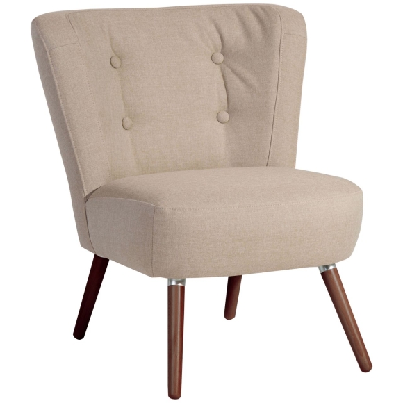 Formschöner Sessel mit vier Zierknöpfen im angesagten Retro-Stil. Neele ist in vielen verschiednenen Bezugstoffen von modern bis verträumt erhältlich. Wählen Sie Ihren Lieblingsstoff und kreieren Sie einen tollen Blickfang für Ihr Zuhause. Die markanten Holzfüße sind zur einfachen Selbstmontage. ·69x68x80 in cm (BxTxH) ·Nettogewicht 12 kg ·Flachgewebe (Leinenoptik) ·100% Polyester ·Sitzhärte mittel ·Anzahl Sitze 1 ·stabile Schichtholzplatte, Polyätherschaum, Diolenabdeckung ·Fußfarbe Buche natur ·stabiles Holzgrundgestell aus Massivholz und Holzwerkstoffen ·Bodenfreiheit 25 cm ·Armteilhöhe innen vorn/hinten  cm ·Höhe ohne Füße 68 cm ·Rückenhöhe innen 39 cm ·Sitzbreite vorn/hinten53 cm ·Sitztiefe 50 cm ·Sitzhöhe 44 cm