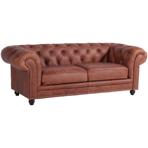 Orleans holt den englischen Chesterfield Stil in Ihr Wohnzimmer. Mit handwerklicher Wertarbeit wurde die aufwändige Knopfheftung im Rücken, an der Sitzrampe und den geschwungenen Armlehnen gefertigt.  Gearbeitet mit viel Liebe zum Detail erhält dieses Sofa seinen markanten, unverwechselbaren Look. Auch die Rückseite ist mit Leder bezogen, damit ist das Sofa frei im Raum stellbar. Die Füße sind zur einfachen Selbstmontage. ·216x100x77 in cm (BxTxH) ·Nettogewicht 62 kg ·Echtleder (Antikoptik) ·100% Leder ·Sitzhärte mittel ·Anzahl Sitze 3 ·Gurtunterfederung, Sitzkissen lose aus Polyätherschaum mit Flocksoftabdeckung ·Fußfarbe Buche nussbaum dunkel ·stabiles Holzgrundgestell aus Massivholz und Holzwerkstoffen ·Bodenfreiheit 7 cm ·Armteilhöhe innen vorn/hinten 26 cm ·Höhe ohne Füße 68 cm ·Rückenhöhe innen 26 cm ·Sitzbreite vorn/hinten142 cm ·Sitztiefe 62 cm ·Sitzhöhe 52 cm