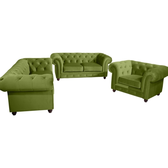 Orleans holt den englischen Chesterfield Stil in Ihr Wohnzimmer. Mit handwerklicher Wertarbeit wurde die aufwändige Knopfheftung im Rücken, an der Sitzrampe und den geschwungenen Armlehnen gefertigt.  Gearbeitet mit viel Liebe zum Detail erhält dieses Sofa seinen markanten, unverwechselbaren Look. Auch die Rückseite ist mit Stoff bezogen, damit ist das Sofa frei im Raum stellbar. Die Füße sind zur einfachen Selbstmontage. ·216x100x77 in cm (BxTxH) ·Nettogewicht 61 kg ·Samtvelours ·100% Polyester ·Sitzhärte mittel ·Anzahl Sitze 3 ·Gurtunterfederung, Sitzkissen lose aus Polyätherschaum mit Flocksoftabdeckung ·Fußfarbe Buche nussbaum dunkel ·stabiles Holzgrundgestell aus Massivholz und Holzwerkstoffen ·Bodenfreiheit 7 cm ·Armteilhöhe innen vorn/hinten 26 cm ·Höhe ohne Füße 68 cm ·Rückenhöhe innen 26 cm ·Sitzbreite vorn/hinten142 cm ·Sitztiefe 62 cm ·Sitzhöhe 52 cm