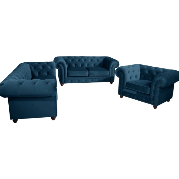 Orleans holt den englischen Chesterfield Stil in Ihr Wohnzimmer. Mit handwerklicher Wertarbeit wurde die aufwändige Knopfheftung im Rücken, an der Sitzrampe und den geschwungenen Armlehnen gefertigt.  Gearbeitet mit viel Liebe zum Detail erhält dieses Sofa seinen markanten, unverwechselbaren Look. Auch die Rückseite ist mit Stoff bezogen, damit ist das Sofa frei im Raum stellbar. Die Füße sind zur einfachen Selbstmontage. ·216x100x77 in cm (BxTxH) ·Nettogewicht 61 kg ·Samtvelours ·100% Polyester ·Sitzhärte mittel ·Anzahl Sitze 3 ·Gurtunterfederung, Sitzkissen lose aus Polyätherschaum mit Flocksoftabdeckung ·Fußfarbe Buche nussbaum dunkel ·stabiles Holzgrundgestell aus Massivholz und Holzwerkstoffen ·Bodenfreiheit 7 cm ·Armteilhöhe innen vorn/hinten 26 cm ·Höhe ohne Füße 68 cm ·Rückenhöhe innen 26 cm ·Sitzbreite vorn/hinten142 cm ·Sitztiefe 62 cm ·Sitzhöhe 52 cm