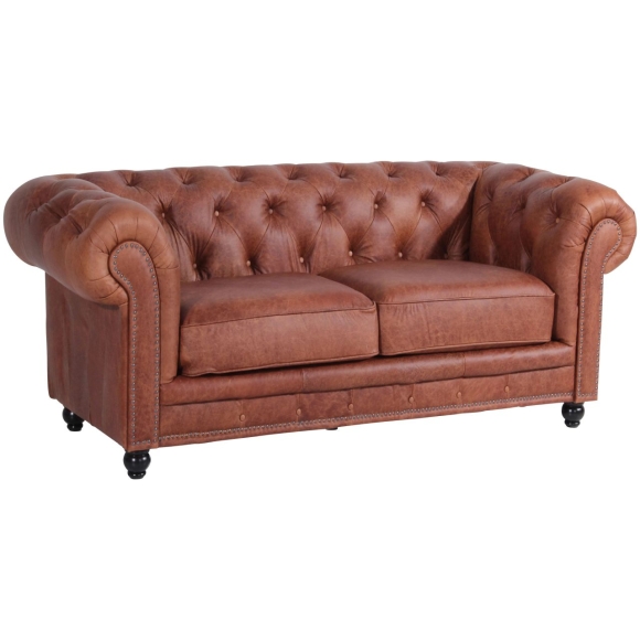 Orleans holt den englischen Chesterfield Stil in Ihr Wohnzimmer. Mit handwerklicher Wertarbeit wurde die aufwändige Knopfheftung im Rücken, an der Sitzrampe und den geschwungenen Armlehnen gefertigt.  Gearbeitet mit viel Liebe zum Detail erhält dieses Sofa seinen markanten, unverwechselbaren Look. Auch die Rückseite ist mit Leder bezogen, damit ist das Sofa frei im Raum stellbar. Die Füße sind zur einfachen Selbstmontage. ·196x100x77 in cm (BxTxH) ·Nettogewicht 55 kg ·Echtleder (Antikoptik) ·100% Leder ·Sitzhärte mittel ·Anzahl Sitze 2 ·Gurtunterfederung, Sitzkissen lose aus Polyätherschaum mit Flocksoftabdeckung ·Fußfarbe Buche nussbaum dunkel ·stabiles Holzgrundgestell aus Massivholz und Holzwerkstoffen ·Bodenfreiheit 7 cm ·Armteilhöhe innen vorn/hinten 26 cm ·Höhe ohne Füße 68 cm ·Rückenhöhe innen 26 cm ·Sitzbreite vorn/hinten122 cm ·Sitztiefe 62 cm ·Sitzhöhe 52 cm