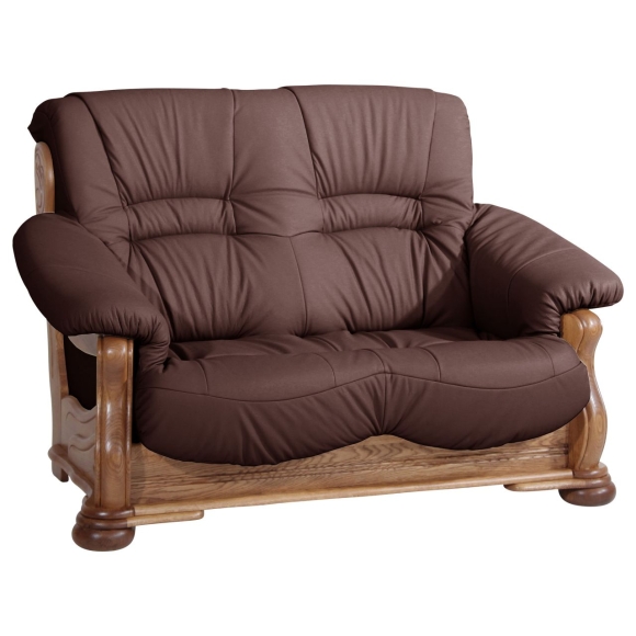 Rustikales 2-sitziges Sofa mit aufwändig gearbeitetem Sichtholzgestell mit eingelegter Sitzschale. Der Federkern im Sitz garanitert einen optimalen Sitzkomfort. ·148x95x95 in cm (BxTxH) ·Nettogewicht 43 kg ·Echtleder ·100% Leder ·Sitzhärte weich ·Anzahl Sitze 2 ·ergonomisch geformte Sitzschalen mit schaumummanteltem Einzelfederkern und Diolenabdeckung auf stabiler Auflageplatte ·Fußfarbe Eiche rustikal P46 ·massives Eiche Sichtholzgestell ·Bodenfreiheit 7 cm ·Armteilhöhe innen vorn/hinten 15 / 22 cm ·Höhe ohne Füße 68 cm ·Rückenhöhe innen 57 cm ·Sitzbreite vorn/hinten91 cm ·Sitztiefe 56 cm ·Sitzhöhe 43 cm