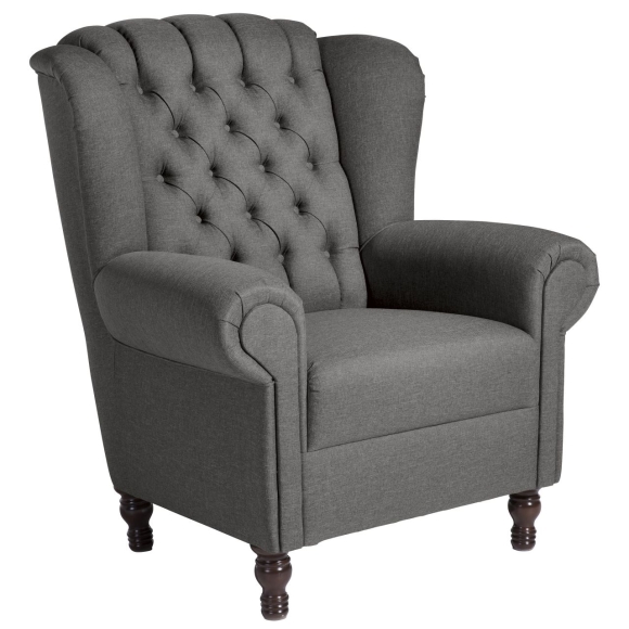 Ein repräsentativer Platz zum Lesen, Fernsehen und Entspannen. Sehr edler Ohrenbackensessel in klassischem Chesterfield-Look in Kombination mit modernen Farben und Materialien. Hergestellt in handwerklicher Wertarbeit. Mit schicker, aufwändiger Knopfheftung und geschwungenen Armlehnen für besondere Eleganz. Die Füße sind zur einfachen Selbstmontage. ·91x90x101 in cm (BxTxH) ·Nettogewicht 35 kg ·Flachgewebe ·100% Polyester ·Sitzhärte mittel ·Anzahl Sitze 1 ·Wellenunterfederung, schaumummantelter Federkern mit Diolenabdeckung ·Fußfarbe Buche nussbaum dunkel ·stabiles Holzgrundgestell, aus Massivholz und Holzwerkstoffen ·Bodenfreiheit 13 cm ·Armteilhöhe innen vorn/hinten 16 cm ·Höhe ohne Füße 68 cm ·Rückenhöhe innen 60 cm ·Sitzbreite vorn/hinten50 cm ·Sitztiefe 53 cm ·Sitzhöhe 44 cm