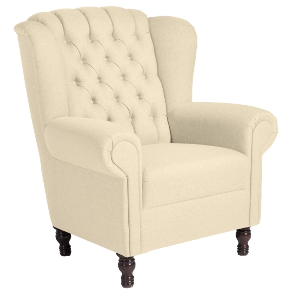 Ein repräsentativer Platz zum Lesen, Fernsehen und Entspannen. Sehr edler Ohrenbackensessel in klassischem Chesterfield-Look in Kombination mit modernen Farben und Materialien. Hergestellt in handwerklicher Wertarbeit. Mit schicker, aufwändiger Knopfheftung und geschwungenen Armlehnen für besondere Eleganz. Die Füße sind zur einfachen Selbstmontage. ·91x90x101 in cm (BxTxH) ·Nettogewicht 35 kg ·Flachgewebe ·100% Polyester ·Sitzhärte mittel ·Anzahl Sitze 1 ·Wellenunterfederung, schaumummantelter Federkern mit Diolenabdeckung ·Fußfarbe Buche nussbaum dunkel ·stabiles Holzgrundgestell, aus Massivholz und Holzwerkstoffen ·Bodenfreiheit 13 cm ·Armteilhöhe innen vorn/hinten 16 cm ·Höhe ohne Füße 68 cm ·Rückenhöhe innen 60 cm ·Sitzbreite vorn/hinten50 cm ·Sitztiefe 53 cm ·Sitzhöhe 44 cm