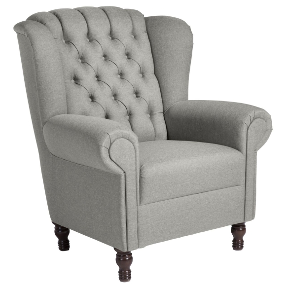 Ein repräsentativer Platz zum Lesen, Fernsehen und Entspannen. Sehr edler Ohrenbackensessel in klassischem Chesterfield-Look in Kombination mit modernen Farben und Materialien. Hergestellt in handwerklicher Wertarbeit. Mit schicker, aufwändiger Knopfheftung und geschwungenen Armlehnen für besondere Eleganz. Die Füße sind zur einfachen Selbstmontage. ·91x90x101 in cm (BxTxH) ·Nettogewicht 35 kg ·Flachgewebe ·100% Polyester ·Sitzhärte mittel ·Anzahl Sitze 1 ·Wellenunterfederung, schaumummantelter Federkern mit Diolenabdeckung ·Fußfarbe Buche nussbaum dunkel ·stabiles Holzgrundgestell, aus Massivholz und Holzwerkstoffen ·Bodenfreiheit 13 cm ·Armteilhöhe innen vorn/hinten 16 cm ·Höhe ohne Füße 68 cm ·Rückenhöhe innen 60 cm ·Sitzbreite vorn/hinten50 cm ·Sitztiefe 53 cm ·Sitzhöhe 44 cm