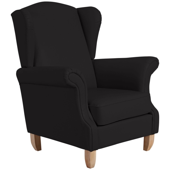 Ein eleganter Ohrenbackensessel im klassischen Design. Die raffiniert geschwungenen Armlehnen machen ihn zu einem besonderen Blickfang. Das lose Sitzkissen, auf einem massiven Holzuntergestell, ist mittels Klettverschluss befestigt, somit rutscht es nicht weg. Die Füße sind zur einfachen Selbstmontage. ·88x84x108 in cm (BxTxH) ·Nettogewicht 30 kg ·Kunstleder ·90% Polyester, 6% Baumwolle ·Sitzhärte mittel ·Anzahl Sitze 1 ·Wellenunterfederung, Sitzkissen lose mit Klettverschluss befestigt ·Fußfarbe Buche natur ·stabiles Holzgrundgestell aus Massivholz und Holzwerkstoffen ·Bodenfreiheit 16 cm ·Armteilhöhe innen vorn/hinten 21 cm ·Höhe ohne Füße 68 cm ·Rückenhöhe innen 65 cm ·Sitzbreite vorn/hinten49 cm ·Sitztiefe 54 cm ·Sitzhöhe 49 cm
