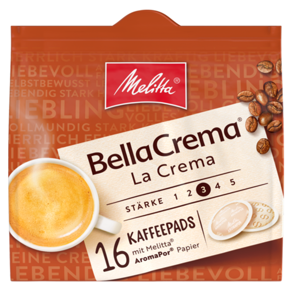 Melitta® BellaCrema® LaCrema: auch in Padform dank ausgewählter Bohnen besonders lecker! Du magst deinen Kaffee mild und harmonisch? Dann wird die Sorte „LaCrema“ zu deinem neuen Liebling! Wie wir das hinbekommen? Durch die ausgewählten Bohnen, die wir liebevoll auf den Punkt rösten.