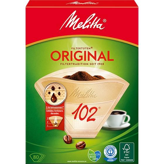 Kaffee braucht Aroma! Die 3 Aromazonen® sorgen für optimale Entfaltung, Verfeinerung und Abrundung des Filterkaffee-Geschmacks. Filtertüten® Original 102® passen perfekt in zahlreiche handelsübliche Kaffeemaschinen.