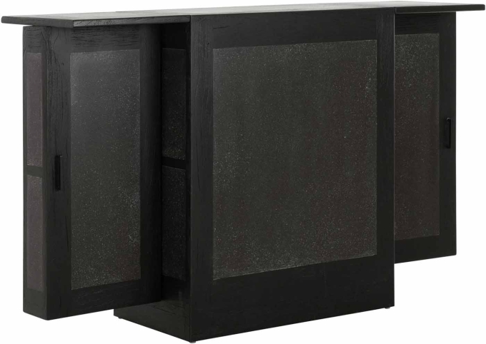 Hochwertiger Barschrank mit Türen und jede Menge Stauraum - der Barschrank Connaught von Must Living lässt auch in Puncto Design keine Wünsche offen. Gefertigt aus massivem Holz und Basalt wirkt dieser massive Barschrank einfach nur edel und zeitlos. Hinter den beiden Türen verbergen sich einige Fächer und eine Schublade die Deckplatte lässt sich zudem öffnen und man kann diese bei geöffneten Türen als verlängerte Theke nutzen. Aber man muss dieses traumhafte Möbelstück nicht zwingend als Barschrank nutzen sondern man kann diesen auch als Kommode verwenden.