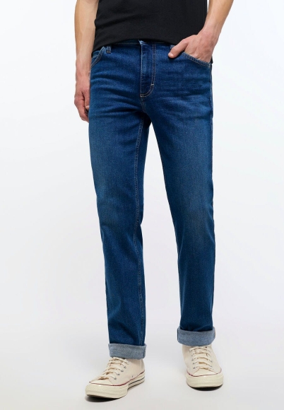 Merkmale + Hersteller: Mustang + Modellname: Tramper + Geschlecht: Herren + Farbe: stonewash + Material: Baumwolle 99 %, Elasthan 1 % + Muster: einfarbig + Waschung: Used Look (leicht) + Style: 5-Pocket-Style + Gürtelschlaufen: Ja + Anlass: leger + Kollektion: Ganzjahresartikel + Artikelnummer: 1013404Ü-5000-783 Schnitt + Passform: Medium Straight Regular Length+ Verschluss: Verdeckter Zip-Fly / Reißverschluss und Knopf + Länge: Länge 38 und Länge 40 (Größentabelle Herrenjeans) + Beinverlauf: gerade bis leicht eng + Bundhöhe: Bund sitzt zwischen Taille und Hüfte + Taschen: Seitentaschen, kleine Geldtasche, Gesäßtaschen mit Ziernähten, kleines Lederpatch am Bund  Wasch & Pflegetipps + Waschen: Maschinenwäsche bis 30° Grad + Bügeln: Bei mittlerer Temperatur (max. 150° Grad) + Chemische Reinigung: Alle allgemeinen üblichen Lösungsmittel erlaubt + Bleichen: Nicht erlaubt + Trocknen: Liegend