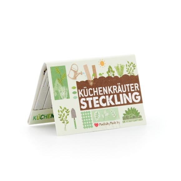 Dieser Steckling enthält alles, was man für ein schmackhaftes Essen braucht: Basilikum, Bohnenkraut, Dill, Pimpinelle und Majoran.Der Steckling - das sind 10 Pappstifte an deren Spitze reichlich Kräuter-Saatgut angebracht ist. Die Stifte können einzeln herausgelöst und in die Erde gesteckt werden. Die Anwendung ist damit extrem einfach. Stift herausbrechen, mit der Spitze voran in die Erde stecken bis das Saatgut komplett verschwunden ist, gießen und fertig.