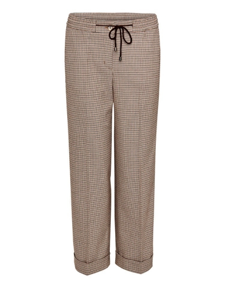 Opus 7/8-Stoffhose Manina für Damen.Details+ Farbe: peanut, Hahnentrittmuster+ Verschluss: Knopf und Reißverschluss+ Gummibund mit Weitenregulierung durch Zugband+ zwei seitliche Taschen+ angedeutete Leistentaschen auf dem Gesäß+ gekrempelter Saum Material66% Polyester, 32% Viskose, 2% Elasthan