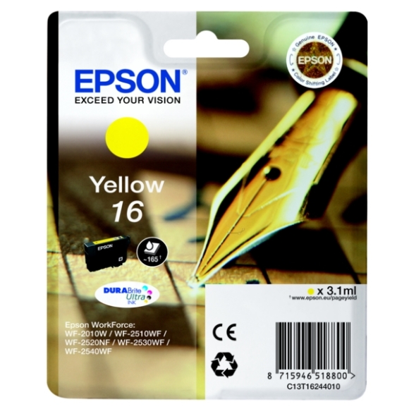 Epson C13T16244010 - 16 Tintenpatrone gelb, 165 Seiten, Inhalt 3,1 ml für Workforce WF 2010 W/2510 WF/2520 NF/2530 WF/2540 WF